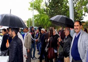 Erzurum’da Lisans Yerleştirme Sınavı (LYS)-4 Sosyal Bilimler sınavına giren adaylar sınavda ter dökerken, aileleri de çocuklarını sağanak yağmur altında bekledi.
