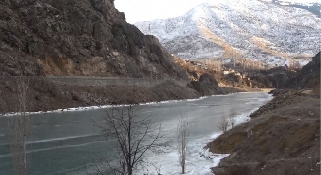 Türkiye’nin en hızlı akan nehri unvanına sahip olan Çoruh Nehri buz tuttu.
