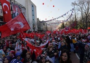 Milletin en doğru kararı vereceğini kaydeden Erdoğan, “Milletimiz geçmişte olduğu gibi meseleye el koyacak. Kendisi ve evlatlarının geleceği için en doğru kararı verecektir. Bursa, gelişmenin, kalkınmanın büyümenin manasını çok iyi bilen bir şehrimiz. Sizler huzurun, barışın, kardeşliğin, istikrarın kıymetini gayet iyi biliyorsunuz. Türkiye’nin 2023 hedeflerine ulaşması, arkasından 2053 ve 71 vizyonları için tüm bunları kalıcı hale getirip güçlendirmemiz gerekiyor. Önümüzde aşmamız gereken engeller var. Her şeyden önce çözüm sürecini kararlılıkla sürdürüp, bunu ilelebet geride bırakmak mecburiyetindeyiz. Ben ailece hayatımızı ortaya koyduk. Bunun zorlu, sabır isteyen, inanç isteyen, dirayet isteyen bir iş olduğunu biliyoruz. İçeride ve dışarıda tüm provokasyonlara, sabotajlara rağmen, hamdolsun süreci buraya kadar getirdik” dedi.