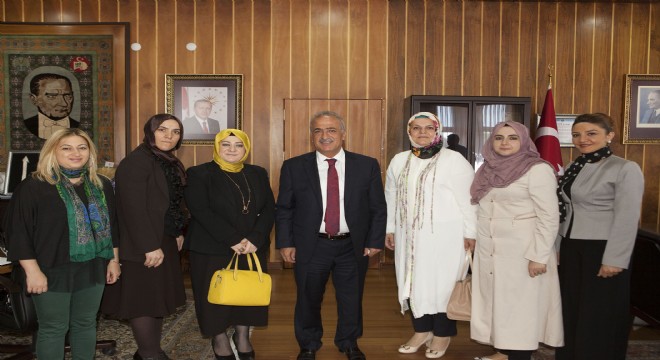 AK Parti Erzurum Kadın Kolları Yönetim Kurulu üyeleri, Atatürk Üniversitesi Rektörü Prof. Dr. Ömer Çomaklı'yı ziyaret ederek hayırlı olsun dileklerinde bulundu.