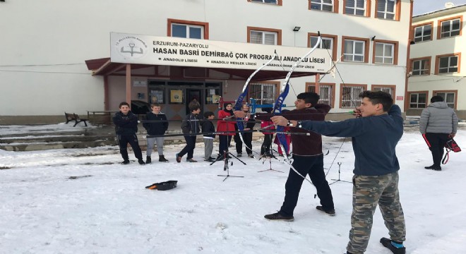 Erzurum'un Pazaryolu ilçesinde Hasan Basri Demir Bağ Çok Programlı Anadolu Lisesi, öğrencilerinin dikkat eksikliğini ata sporu olan okçuluk ile yeniyor.