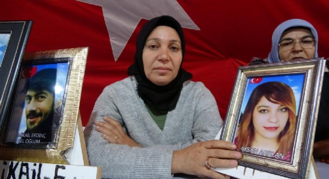 Evladına ‘teslim ol’ çağrısında bulunan Arslan, “Yaklaşık 4 senedir burada evlat mücadelesini veriyoruz. Maalesef HDP ne bizi görüyor, ne de duyuyor. Biz evlatlarımızı HDP’den istiyoruz. Evlatlarımız HDP tarafından kaçırıldı. Evlatlarımızı almadan hiçbir yere ayrılmayacağız. Mücadelemiz sonuna kadar devam edecek. Kızım eğer beni duyuyorsan kaç gel, güvenlik güçlerimize teslim ol. Devletimiz size kucak açmış. Gelirseniz eğer herhangi bir ceza uygulanmayacak” dedi.