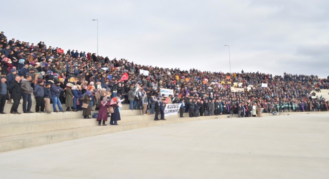 ABD'nin Tel Aviv'deki büyükelçiliğini Kudüs'e taşıma ve Kudüs'ü İsrail'in başkenti olarak tanıması Kağızman’da protesto edildi.