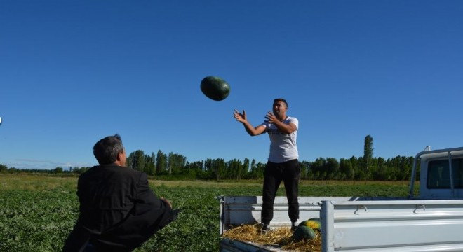 Iğdır’ın Oba köyünde, 'örtü altı' olarak bilinen ve erken üretilen karpuz hasadına başlandı.