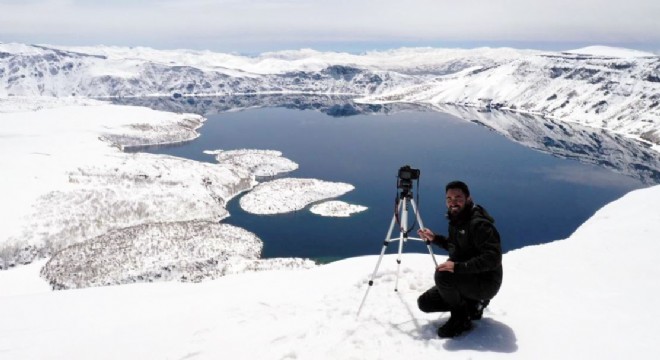 Nemrut Krater Gölü, Van Gölü havzasının batısında, Bitlis'in Tatvan, Ahlat ve Güroymak ilçeleri arasında yer alıyor. Avrupalı Seçkin Destinasyonlar Projesi (EDEN) kapsamında 'Mükemmeliyet Ödülü' alan 2 bin 250 rakımlı göl, her mevsim doyumsuz manzarasıyla ziyaretçilerini hayran bırakıyor. Bitlis’te bulunan doğa gezginleri ve fotoğrafçılar metrelerce kara rağmen 4 saatlik yürüyüşün ardından Nemrut Dağı zirvesine çıktı. Zirveye çıkan gezgin ve fotoğrafçılar Nemrut Dağı ve içinde bulunan krater göllerinin karla bütünleşen manzarasını fotoğrafladı. Dağın zirvesinde beyaz karların ve masmavi göllerin oluşturduğu manzaranın keyfini çıkan fotoğrafçılar drone ile dağın çanağının içinde bulunan kalderasını ve krater göllerinin eşsiz güzelliğini havadan da görüntülendi.