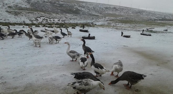 Çıldır’da yaylaya çıkan Erhan Karacay isimli vatandaş beyaz örtüde yürüyen ve kara erken yakalanan kazların fotoğraflarını çekerek sosyal medyada paylaştı.