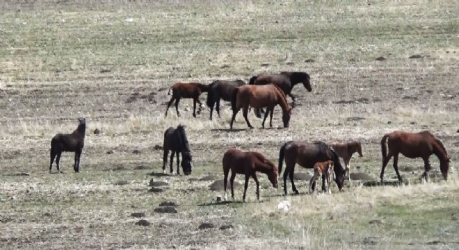 Mezra Köyü yakınlarında sıcak ve güneşli havayı fırsat bilen yılkı atları, bir süre arazide karınlarını doyurdu. Yılkı atları daha sonra uzaklaşarak gözden kayboldu.