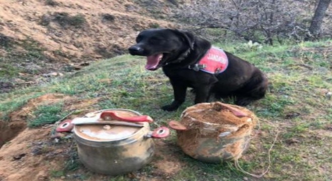 Bingöl’de mayın arama köpeği Moçi’nin tepki vermesi üzerine toprağa gömülü vaziyette 2 adet düdüklü tencere içerisinde toplamda 40 kilo ağırlığında El Yapımı Patlayıcı Madde (EYP) düzeneği ele geçirildi. EYP düzeneği operasyon bölgesinde imha edilerek kullanılmaz hale getirildi.