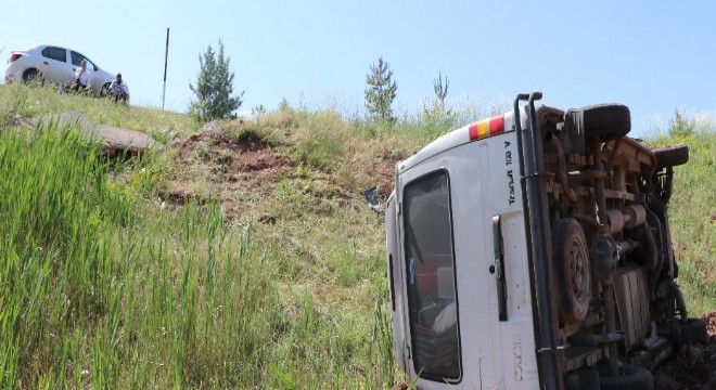 İspir’de meydana gelen trafik kazasında bariyerlere çarptıktan sonra takla ...