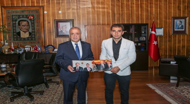 Atatürk Üniversitesi Rektörü Prof. Dr. Ömer Çomaklı, yılın öğretmeni seçilerek Cumhurbaşkanlığı Külliyesi’ne davet edilen Yasin Sepil’i makamında misafir etti.
