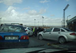 Güvenlik önlemlerinin yoğun şekilde alındığı B.B. Erzurumspor Birlik Nakliyat Düzyurtspor maçında stadyum girişinde basın mensuplarının araçlarının içeriye alınmaması gazetecileri zor durumda bıraktı.