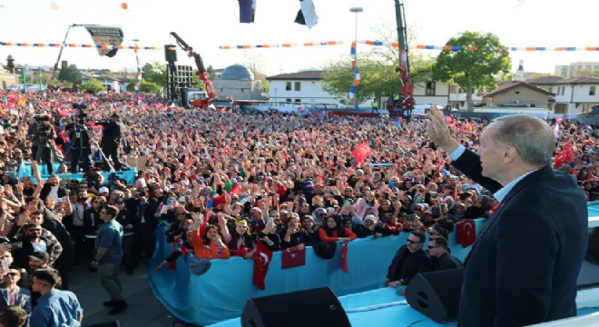 "Yine meydanlara sığmayan, 14 Mayıs'ta yine destan yazmaya hazırlanan, iradesine, istikbaline ve 21 yıllık kazanımlarına sahip çıkan bir Konya" gördüğünü ifade eden Cumhurbaşkanı Erdoğan, "Ahde vefanız için, aşkınız, sevdanız için her birinize şahsım, milletim adına şükranlarımı sunuyorum. Mevla kardeşliğimizi muhafaza eylesin, yol arkadaşlığımızı daim etsin diyorum" dedi.