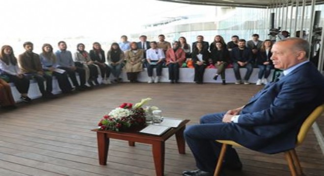 “Türkiye’nin dijital yolculuğunda gençliği nerede görüyorsunuz?” sorusu üzerine Erdoğan, her şeyden önce dijital yolculuğun içinde bizzat gençliğin olduğuna dikkat çekerek, “Şu anda bizim jenerasyon sizler kadar bu yolculuğun içinde aktif yer almıyor. Sizler artık öncü olmaya aday konumdasınız. Çanakkale ile ilgili o hatırayı burada dile getirmiş olmanız da beni mutlu etti. Çanakkale gerçekten 15’lilerin, o tıp öğrencilerinin savaşta yer aldığı bir yer. Çanakkale’yi bilmeyen tarih bilemez, geleceğe kendini hazırlayamaz. Çanakkale’yi bilirsek kurtuluş mücadelemizin ne olduğunu anlarız. Bu bizim mesuliyetimizi daha da artırıyor. Her şey hazır gelip kucağımıza konmadı. Bunun için verilen bir mücadele var. Bu mücadele neticesinde şehitler verdik, gazilerimiz oldu. Bütün bunların sonucunda da bizler bu vatanı başta Çanakkale olmak üzere ele almış olduk. Şimdi düşünün 16 bin 500 kilometreden buraya geliyorlar. Niye geliyorlar? Ne var burada? Hesap başka. Eğer Çanakkale Boğazı başta olmak üzere burası geçilirse girilecek olan yer İstanbul’du. İstanbul öyle bir hedef ki, Konstantinopol olayını hazmedemeyişlerinin sebebi o. Ecdadımız buna imkan vermedi. Bunu başardıkları için o zamandan bu zamana hala bunu unutmuyorlar, hazmedemiyorlar. Hazmedemedikleri içinde orada 51 Müslüman’ı Cuma namazında ibadet esnasında şehit ettiler. Bunda batının sesi çıktı mı? Bu teröristi kalkıp da kötülemediler. 51 Müslüman orada camide ibadet esnasında şehit ediliyor ve ses yok. Biz bu dünyada kendi göbeğimizi kendimiz keseceğiz. Yolumuz ırak işimiz zor yapmamız gereken çok şey var. Sanatta, kültürde, ilimde, irfanda çok iyi konuma gelmemiz lazım” ifadelerini kullandı.