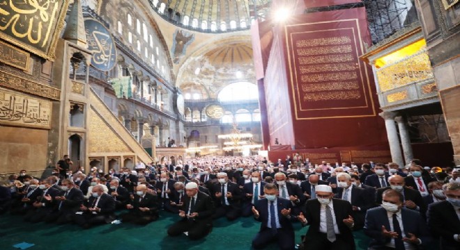 Ayasofya-i Kebir Cami-i Şerifi, 86 yıl aradan sonra kılınan Cuma namazıyla ibadete açıldı. İlk namaza Cumhurbaşkanı Recep Tayyip Erdoğan, Cumhurbaşkanı Yardımcısı Fuat Oktay, TBMM Başkanı Mustafa Şentop, MHP Lideri Devlet Bahçeli, İçişleri Bakanı Süleyman Soylu, Hazine ve Maliye Bakanı Berat Albayrak, Kültür ve Turizm Bakanı Mehmet Nuri Ersoy, Milli Savunma Bakanı Hulusi Akar ile çok sayıda isim katıldı. Cumhurbaşkanı Recep Tayyip Erdoğan’ın eşi Emine Erdoğan ve kızı Sümeyye Erdoğan Bayraktar ilk namaz için kadınlar bölümünde yerini aldı. Vatandaşlar da Ayasofya-i Kebir Cami-i Şerifi’nde yıllar sonra kılınan ilk namaza yoğun ilgi gösterdi. Namaz öncesi Cumhurbaşkanı Recep Tayyip Erdoğan Kur'an-ı Kerim okudu, Diyanet İşleri Başkanı Prof. Dr. Ali Erbaş dua okudu. Ardından seneler sonra Ayasofya’da ilk Cuma namazı kılındı. Prof. Dr. Ali Erbaş, Cuma hutbesini kılıç geleneğiyle okudu. Alanda namaz kılınacak bölümler saatler öncesinden dolarken namaz öncesi cami çevresine girişler de kapatılmıştı.