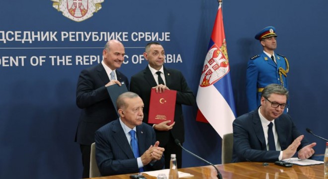 Cumhurbaşkanı Recep Tayyip Erdoğan ve Sırbistan Cumhurbaşkanı Aleksandar Vucic, Sırbistan Sarayı’ndaki baş başa ve heyetler arası görüşmeler ile anlaşmaların imza töreninin ardından ortak basın toplantısı düzenledi.