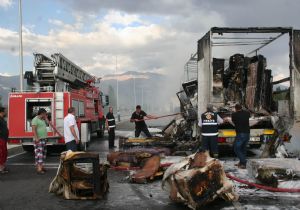 Çağlayan Kavşağı’nda kırmızı ışıkta beklerken aynadan yangını fark ettiği belirtip çekiciyi yol kenarına çektiğini söyleyen TIR şoförü Şaban Saklıca, “Yangını görünce dorsenin halatını söktüm. Halatı sökünce alevler daha da arttı. Ancak çekiciyi yangından kurtarabildim. TIR’da mobilya yüklüydü. Kayseri’den Erzurum’a gidiyordum” dedi.