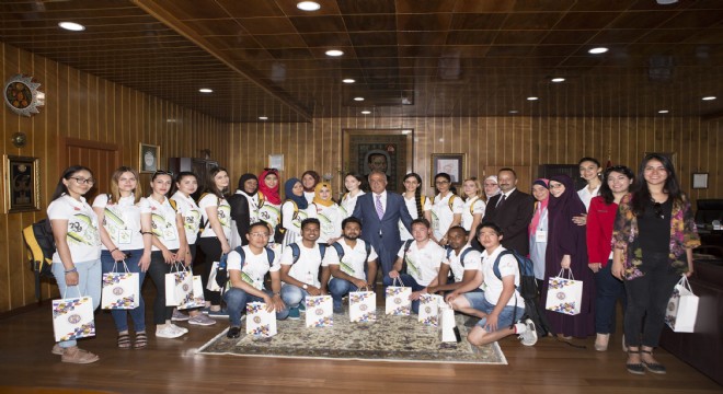 Türkçe Yaz Okulu öğrencilerinin ziyareti Rektör Çomaklı’nın misafir öğrencilere hediyelerini vermesi ve hatıra fotoğrafının çekilmesiyle sona erdi.