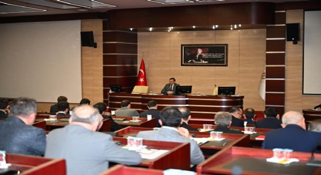 Kaymakamlar ve kurum müdürlerinin katılımıyla gerçekleşen toplantıda, Vali Mustafa Çiftçi, Erzurum’da yapılması planlanan projeleri istişare etti.