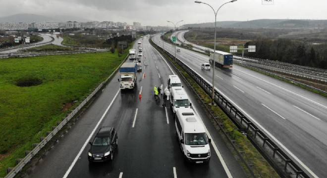 Polis ekipleri, İçişleri Bakanlığının genelgesi doğrultusunda korona virüs önlemleri kapsamında İstanbul'un giriş ve çıkış noktalarında denetime başladı. TEM Otoyolu Orhanlı mevkii Ankara istikametinde ekipler bir servis aracını durdurdu. Ekipler gerekli sağlık kontrollerini yaptıktan sonra yasağa uymayan servis şoförüne yetki belgesiz yolcu taşımaktan dolayı 2 bin 278 Türk lirası, fazla yolcu taşımaktan dolayı ise 4 bin 74 Türk lirası cezai işlem uyguladı. Diğer denetim noktalarında da polis ekipleri denetim yaptı. Öte yandan trafik denetim uygulamaları drone ile havadan görüntülendi.