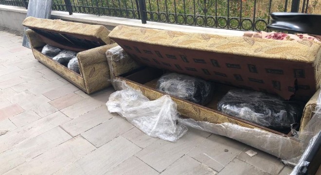 Erzurum’da polis tarafından durdurulan bir nakliye kamyonu içerisinde kanepe içerisine gizlenmiş 105 kilogram ot esrar ele geçirildi.