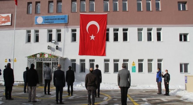 Milli Eğitim Bakanı Ziya Selçuk’un Türkiye genelinde tüm okullarda, bayrak töreni yapılması talimatının ardından Erzurum’da da Ömer Nasuhi Bilmen İlkokulu’nda tören düzenlendi.