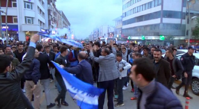 Maçın bitiş düdüğünün ardından Cumhuriyet Caddesi'ne akın eden mavi-beyazlı taraftarlar Play-Off sevincini doyasıya kutladı.