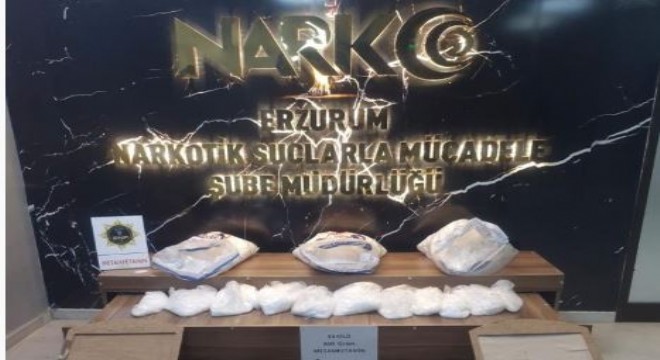 Erzurum Emniyet Müdürlüğü Narkotik Suçlarla Mücadele Şube Müdürlüğü görevlilerince il genelinde uyuşturucu madde konularına yönelik Narkotik Madde Arama Köpeği HERA ile yapılan kontroller neticesinde; 34 kilo 800 gram metamfetamin maddesi ele geçirildi. Konu ile ilgili adli mercilere sevk edilen 4 şahıstan 3’ü tutuklanarak Ceza İnfaz Kurumuna teslim edilirken 1 şahıs hakkında adli sürecin devam ettiği belirtildi.