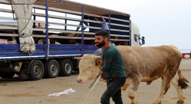 Erzurum’un Aziziye ilçesindeki hayvan pazarında bir tıra 12 büyükbaş kurbanlık yüklediğini belirten Hüseyin Ağdaş, önce Rize’ye ardından da İstanbul’a kurbanlıkları satmak üzere yola çıkacağını söyledi.