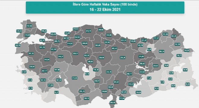 16 – 22 Ekim aralığında Türkiye illeri vaka sayısı sıralaması şöyle: