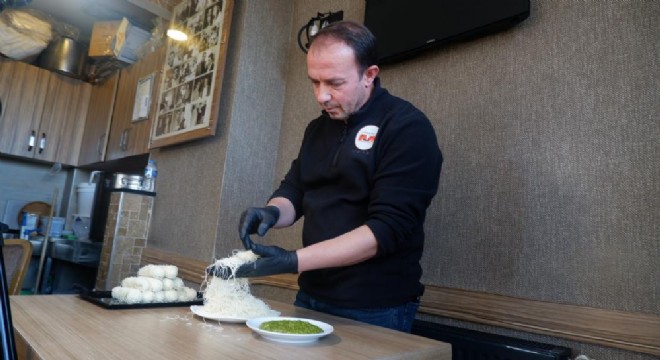 Erzurumlu Kadayıf Ustası Cüneyt Bingöl, gelen talepler üzerine, deneme amaçlı Dubai çikolatalı kadayıf dolması yaptıklarını ifade ederek, “Normalde kadayıf dolmasının için ceviz konur. Bu defa kadayıfımızın içine Antep fıstığı ve kadayıftan oluşan harcı koyduk. Normal şekilde kızarttık, şerbetini verdik ve daha sonra çikolata ile kapladık. Lezzeti ve hafifliği ile müşterilerimizin beğenisini aldı.” diye konuştu.