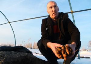 Erzurum’un Yakutiye ilçesine bağlı Dadaşköy yolu üzerinde seracılık yapan Necati Yıldızer, toprağı adeta derin dondurucu olarak kullanıyor. Yıldızer, yaz mevsiminde ürettiği ürünleri soğuklardan korumak için toprağın altına gömerek ürünlerin kış ayına kadar taze kalmasını sağlıyor. Eskiden aile büyüklerinin bu yöntemi kullandığını belirten Necati Yıldızer, kendisinin de 10 senedir toprağı derin dondurucu gibi kullandığını ve bu şekilde üründeki su kaybını önlediğini söyledi.