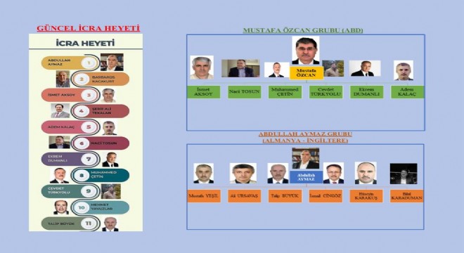 ABD ayağını yöneten Mustafa Özcan, örgüt içerisinde misyon adamı olarak biliniyor. Çarkın dönmesi ve işleyişin bozulmaması için her türlü tavizi vermesiyle bilinen Özcan, örgüt içinde geniş bir etki alanına sahip. Özcan, "Hizmet için gerekirse şeytanla bile istişare ederim" sözlerinin de sahibi olarak biliniyor. Bir diğer öne çıkan isim olan ve para konularında hassasiyetliği ile bilinen İsmet Aksoy ise örgütün kasası olarak biliniyor. Özcan tarafından devredilen Kaynak Holding'in sahibi Naci Tosun da örgüt içerisinde yeterli etki sağlayamadığından dolayı mevcut sistemi desteklemesiyle tanınıyor. Özcan'ın etkisi ile bir dönem siyasete merak salan Muhammed Çetin ise, güç ve kudret sahibi olmaktan hoşlanan biri olarak biliniyor. Çetin, ayrıca Özcan ve Dumanlı ile yakın ilişkilere sahip isim olarak öne çıkıyor. “Uzun Cevdet” lakaplı Cevdet Türkyolu'nun bacanağı olan Adem Kalaç ise damatlar arasında en büyük güce sahip olan kişi olarak adlandırılıyor. Bir dönem Zaman Gazetesi'nin eski genel yayın yönetmeni olarak çalışan ve Özcan'ı destekleyen isimlerden olan Ekrem Dumanlı ise örgütün yeni ahi heyeti içerisinde yer alıyor. FETÖ'nün yeni icra heyetine seçilen ve Özcan'a yakın olan bu isimlerin tamamı örgüt içi karar alma mekanizmasında çoğunluğu oluşturuyor.