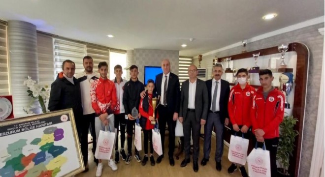 Türkiye Atletizm Federasyonu (TAF) tarafından Adana’da düzenlenen Kros Ligi Türkiye Şampiyonası’nda Yıldız erkekler kategorisinde şampiyon olan atletler ve antrenör Cahit Demir ödüllendirildi. Aynı zamanda Erzurum TOHM ve SEM sporcuları olan Karayazı Belediyespor Atletizm Takımı, Gençlik ve Spor İl Müdürlüğü’nü ziyaret etti. Erzurum Gençlik ve Spor İl Müdürü Birdal Öztürk ve diğer davetliler, Karayazılı şampiyon atletlere çeşitli hediyeler verdi.
