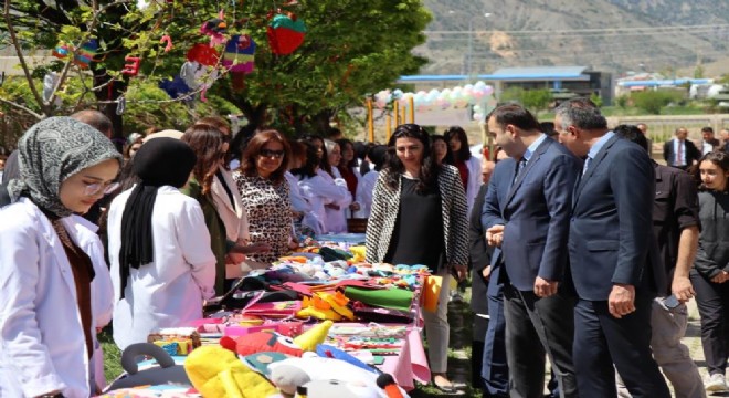 Oltu Nene Hatun Mesleki ve Teknik Anadolu Lisesi Müdürü Yunus Efiloğlu, “Okulumuzda bulunan alanların dönem içerisinde hazırlamış oldukları çalışmaların bir sergisini hazırladık. Özellikle çocuk eğitimi alanının dönem boyunca yaptığı oyuncaklar ve diğer çalışmalarla birlikte okulumuz bahçesinde bir sergi düzenledik. Yiyecek içecek hizmetleri alanında bu etkinliğe özel olarak yaptıkları yiyecekler hazırlandı. Bu sergimizdeki amacımız okulumuzda ki alanların tanıtımını yapmak bugün diğer okullarda ki sekizinci sınıf öğrencilerimize okulumuzun alanlarını tanıtacağız. Bu yaptığımız çalışmaları göstereceğiz. Ayrıca okulumuz bünyesinde özel eğitim sınıfımızda var. Onlarda kendilerine göre hediyelik eşyalar yaptılar. El sanatlarıyla ilgili çalışmalar yaptılar. Bu sergiden elde edeceğimiz geliri Malatya’da depremden etkilenen bir okullu kardeş okul seçip yardım edeceğiz. Güzel bir etkinlik düzenledik, inşallah halkımızın da katılımını bekliyoruz” diye konuştu.