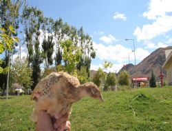 Oltu Devlet Hastanesi bahçesinde bulunan Ur Kekliği yavrusunu görenler şaşırdı.