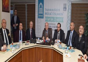 Büyükşehir Belediye Başkanı Mehmet Sekmen, Dünya’da bir tek Erzurum’da var olan 1001 Hatim geleneğinin önemine dikkati çekerek, “Erzurum’da asırlardır yaşatılan 1001 Hatim geleneği ile İslam’ım kilidi bu muhteşem şehirde birlik ve vahdet ruhu yeniden canlanır, hatıralar yâd edilir, gözler yaşarır, kalpler titrer ve Kerim kitabımız Kur’an’ın nuru âlemi aydınlatır” dedi. İl Müftü Vekili Celal Büyük, Atatürk Üniversitesi İlahiyat Fakültesi Dekanı Prof. Dr. Davut Yaylalı, Büyükşehir Belediye Başkan Vekili Eyüp Tavlaşoğlu, Genel Sekreter Ali Rıza Kiremitci, ESKİ Genel Müdürü Mevlüt Vural, Genel Sekreter Yardımcıları Ünsal Kıraç, Cevat Öksüz ve Zafer Aynalı, Kent Konseyi Başkanı Aydın Bozkurt, Büyükşehir Belediye Meclisi Üyeleri, sivil toplum kuruluşlarının başkan ve temsilcilerinin katıldığı toplantıda 1001 Hatim geleneği ile ilgili sunum yapıldı.