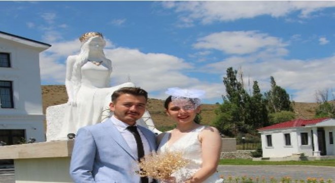Narman’a yapılan Turistik Butik Otel önünce yapılan Gülperi heykeli genç çiftlerin ilgi odağı oluyor.