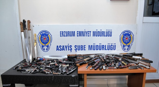Erzurum’da güven timleri yaptıkları uygulamada 3 ayda 490 adet bıçak ele geçirdi.