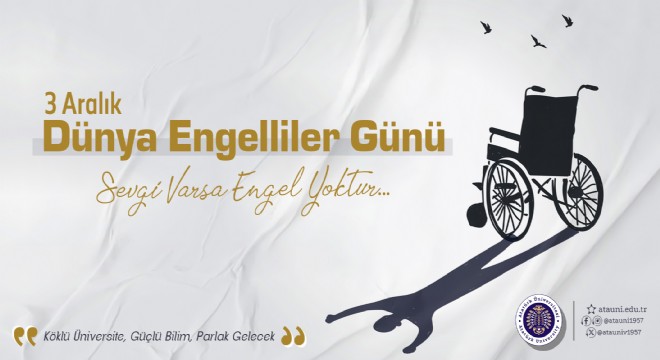 3 Aralık Dünya Engelliler Günü vesilesiyle, engelli bireylerin yalnızca bugün değil her gün hatırlanması ve hak ettikleri desteği görmeleri gerektiğini bir kez daha vurguluyoruz. Bu anlamlı günde, engelli bireylerimize ve onların ailelerine sevgi, saygı ve şükranlarımı sunuyorum. Unutulmamalıdır ki; sevgi varsa engel yoktur.’