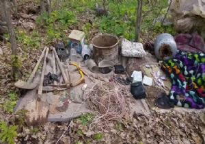 “Teröristlerin Kandil’le görüşmede kullandıkları 1 adet Yeasu marka büyük telsiz (1 adet telsiz mikrofonu, 1 adet telsiz kabı,) EYP’lerin uzaktan patlatılmasında kullanılan 500 m kablo, EYP yapımında kullanılan 1 adet büyük tüp, 1 adet radyo, 4 adet büyük boy pil, 7 adet örgütsel doküman, Örgüte yeni katılanlara ait isim listesi, Muhtelif yaşam malzemeleri (2 adet çaydanlık, 10 adet bardak, 1 adet büyük kazan, 4 adet cam kavanoz), 3 adet kazma, 5 adet kürek, 2 adet balta, 3 adet testere, 3 adet tahra (satır), 250 m sera naylonu, 6 adet battaniye, 1 kg. tütün, 1 adet küçük hesap makinası.”
