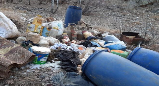 Bitlis kırsalında terör örgütünce toprağa gizlenmiş patlayıcı yapımında kullanılan malzemeler ele geçirildi.