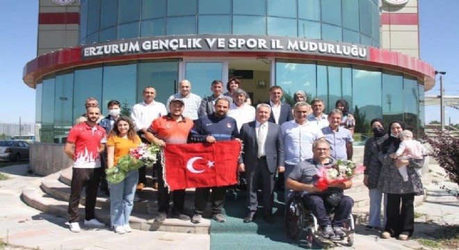 Paralimpik Okçuluk Takımının antrenörü olarak Tokyo’da tarih yazan Hasan Basri Hancı Memleketi Erzurum’da çiçeklerle karşılandı. Hancı’ya Türk Bayrağı motifli halı hediye eden Gençlik ve Spor İl Müdürü Fuat Taşkesenligil, “Madalyalar sizden tesisler bizden. Bizi madalyaya doyurun sizler için yeni tesisler kazandıralım” dedi.