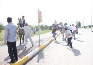 ERZURUM (İHA) - Başbakan Recep Tayyip Erdoğan’ın Erzurum ziyareti sırasında, Erdoğan’ı karşılamak için bekleyen cirit ekibinin atlarını, helikopterin yüksek sesi ürküttü.