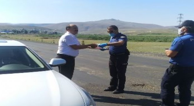 Tekman ilçesinde bulunan polis noktalarında emniyet personelleri sürücülere bayramlık şeker ve kolonya ikram ettiler.