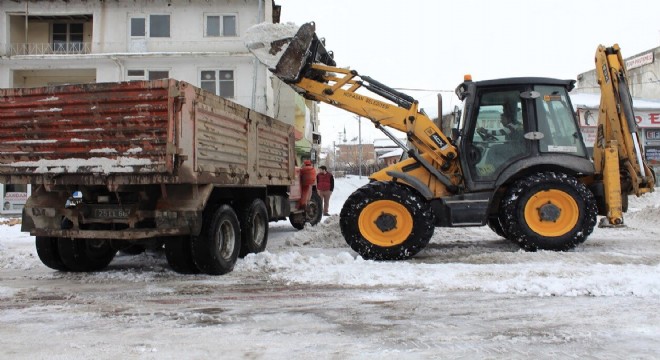 Horasan Belediye Başkanı Abdulkadir Aydın, ilçe merkezindeki tüm ana ve ara arterlerde yol açma, tuzlama ve kar taşıma çalışmalarının devam ettiğini belirtti.