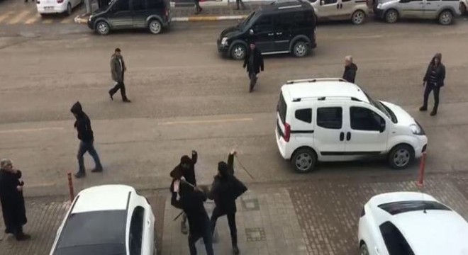 Horasan ilçesinde iki grup cadde ortasında sopalarla birbirlerine saldırdı. Çıkan kavgada 4 kişi yaralandı.