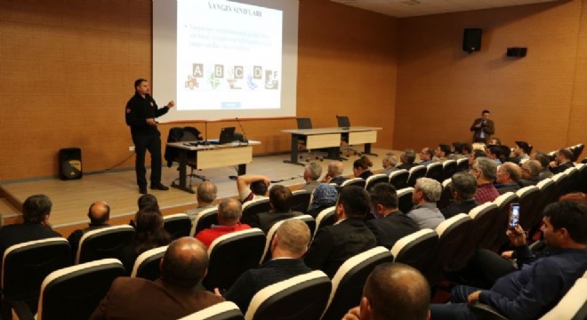 Toplantı salonunda verilen eğitimin ardından uygulamaya geçildi. Sağlık Müdürlüğü önünde senaryo gereği yangın ve kurtarma tatbikatı yapıldı.