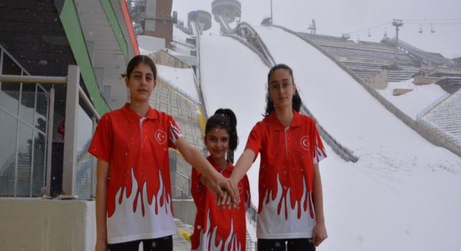 Erzurum Atlama Kulelerinde çalışmalarını sürdüren Aslıhan Güven (14), Elif Azra Şerefoğlu(12) ve Ravzanur Ekmekçi(13) Türkiye’yi Uluslararası arenada temsil etmek için çalışıyor.