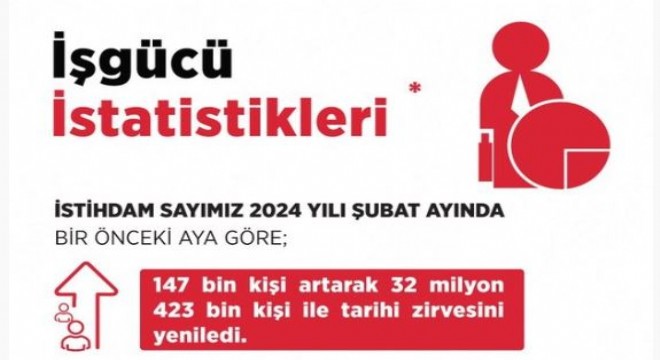 Çalışma ve Sosyal Güvenlik Bakanı Vedat Işıkhan, istihdamın şubat ayında, bir önceki aya göre 147 bin kişi artarak 32 milyon 423 bine yükseldiğini söyledi.