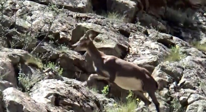 İspir ilçesinde koruma altındaki dağ keçisi görüntülendi.